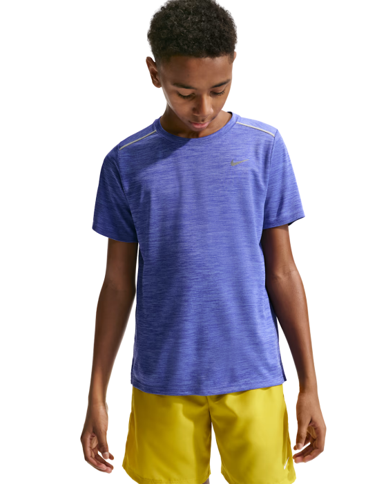 Tricou Nike Copii Miler Dri-FIT Lapis/Royal Pulse ofera confort si respirabilitate datorita tehnologiei Dri-FIT si materialului usor, fiind perfect pentru copii activi.