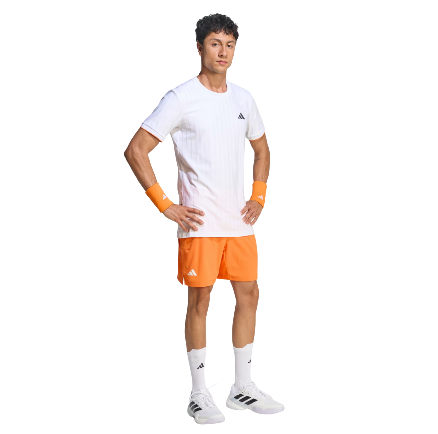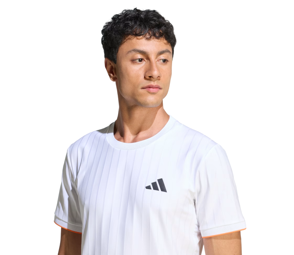 Tricou Tenis Adidas Barbati Freelift Pro White este un tricou tehnic de performanta, parte din colectia Melbourne, creat pentru jucatorii de tenis care cauta confort, ventilatie si libertate de miscare pe teren. Designul slim fit si constructia Freelift sub brat ofera mobilitate optima pentru servire si voleuri, in timp ce tehnologia Climacool asigura disiparea transpiratiei si mentinerea unui confort uscat in timpul jocului. Materialele moderne si detaliile elegante transforma acest tricou intr-o alegere ideala pentru tenis, padel sau pickleball.